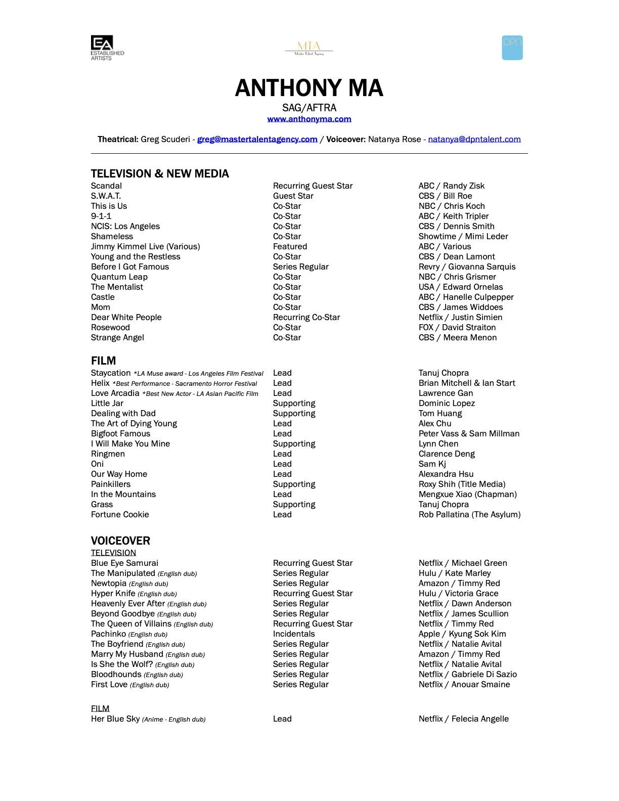 Anthony Ma is an award-winning actor, writer, director, producer, and voiceover artist born & raised in Arcadia, CA.